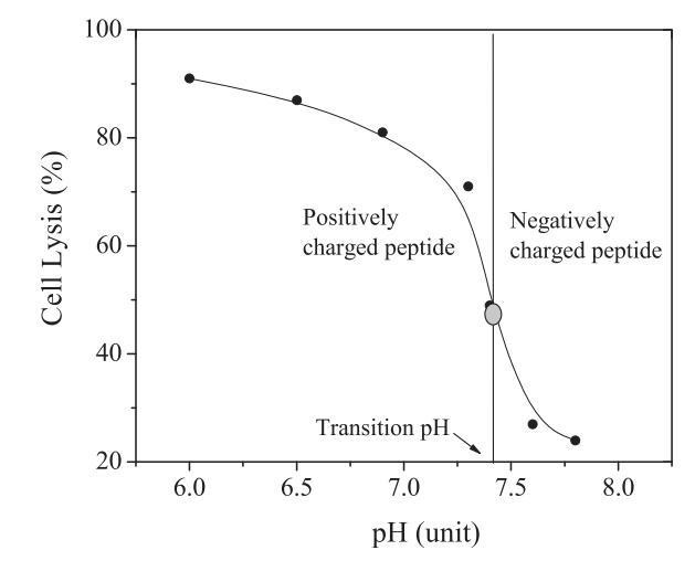 图1:过渡pH=7.35的肽CL-7的pH依赖性膜裂解活性。