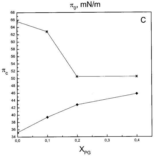 吲哚西丁的π也显着增加,显示其插入SOPC单层(图1b)。然而,吲哚青素的膜活性明显高于magainin 2,具有πc≈65mN/m,用于SOPC胶片。与magainin 2类似,单层中POPG含量的增加增强了吲哚青霉素的渗透,增加了∆π低于~38 mN/m,与肽和脂质单层之间的静电相互作用一致。然而,在后一个表面压力值之上,吲哚西丁引起的π增量被POPG减弱。因此,与magainin 2相反,在存在POPG的情况下,πc减小(图1c),在XPG=0.4时从~65 mN/m(对于SOPC单层)变为~50 mN/m。在SOPC单层中,吲哚西丁增加的π也被胆固醇(X=0.1)增加,而πc降低至~54 mN/m。图1所示的magainin 2和吲哚西丁的模式非常不同,后一种肽的明显交叉点为~38 mN/m。