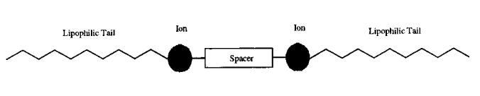 两个末端烃尾可以是短的,也可以是长的;两个极性头基可以是阳离子、阴离子或非离子;间隔物可以是短的或长的、柔性的或刚性的、极性的或非极性的(参见参考文献1中的方案1)。8-12双子座不需要围绕间隔物的中心对称布置。13,14显然,丰富的化合物存在于合成可能性的范围内。