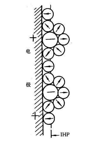 我们知道在溶液中电极表面是吸附了一层极性水分子的。就是紧密层第一层定向排列的水分子偶极层。所谓的表面活性物质只有脱去其外部的水化膜,并且挤掉吸附在电极表面的水分子,才有可能与电极表面发生短程作用而聚集在界面,也就是成为表面活性物质。比如在前面说紧密层结构时候的阴离子。