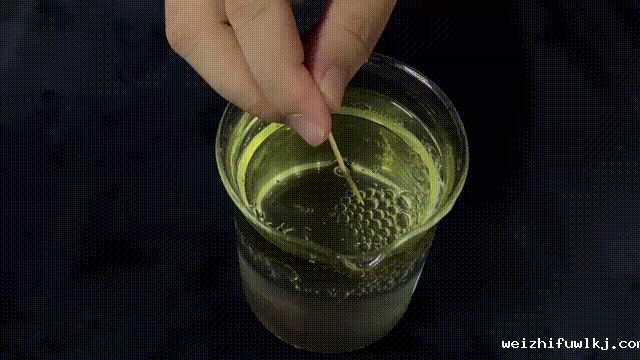 不过要小心,如果牙签触碰到了水滴的底部,水滴就会破裂下沉