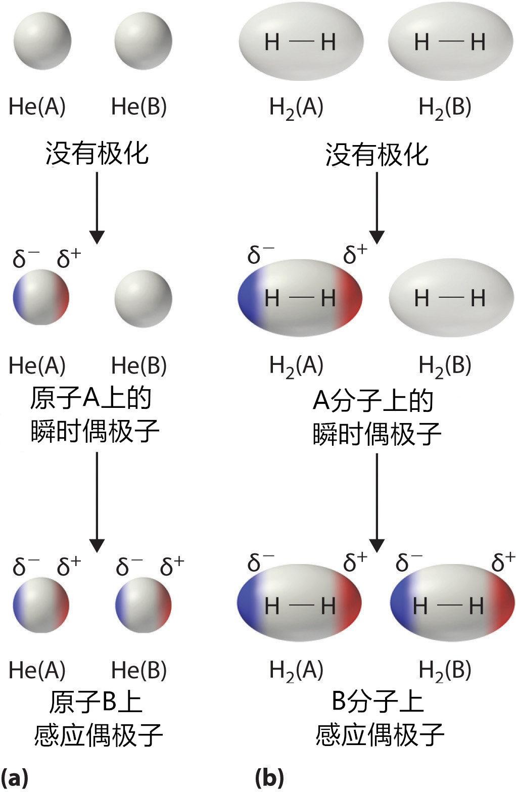 非极性分子感应偶极子产生伦敦力