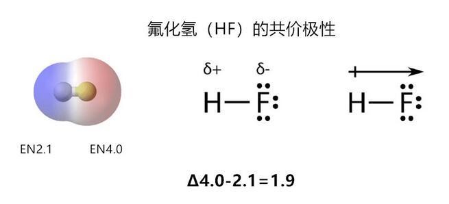 当电负性差异的值为0~0.4之间,共价是弱极性的,分子对外依然显示非极性的特征;