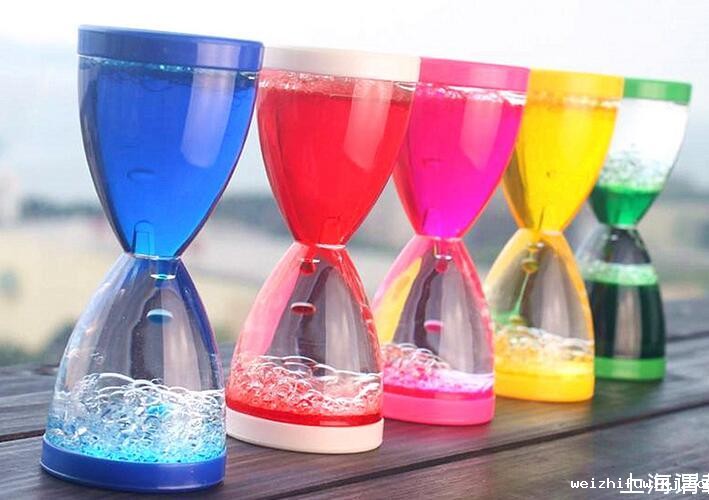 利用水油分层制成的液体“沙漏”,有颜色的是水