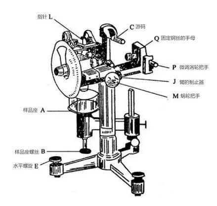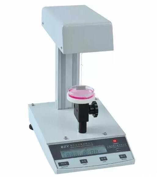 表面18luck国际的结构,主要由扭力丝、铂金环、支架、杠杆架、蜗轮付等组成。使用时通过蜗轮付的旋转对扭力丝施加扭力,并使该扭力与液体表面接触的铂金环对液体的表面张力相平衡,当扭力继续增加,液面被拉破时,扭力丝扭转的角度,用刻度盘上的游标指示出来,此值就是M值,用mN/m表示。最后用M值乘以校正因子F,即得液体实际表面张力值δ。