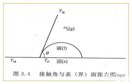 该式称为Young方程或润湿方程。θ越小,润湿过程越易进行。习惯上,θ>90℃,为不润湿,θ<90℃,为润湿。