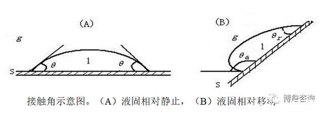 若液体与固面无相对运动时,所形成的两个接触角是相等的即平衡接触角θe;若液体与固体发生相对运动时,则会形成两个不同的接触角。较大的θa称为前进接触角,较小的θr称为后退接触角。这种θa>θr的现象称为接触角滞后。