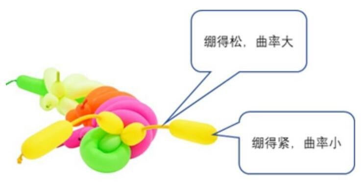 气球内部的气体压力处处相等,因此,气球内外的压差是一个常数。但是,接触过这种气球的人都有一个经验,就是粗的地方绷得紧,而细的地方绷得就不那么紧。也就是说,在起球不同的地方,皮膜的张力是不同的,如上图所示。那么问题就来了,绷得紧的地方和绷得松的地方,产生的压力差却是相等的,这是为何?