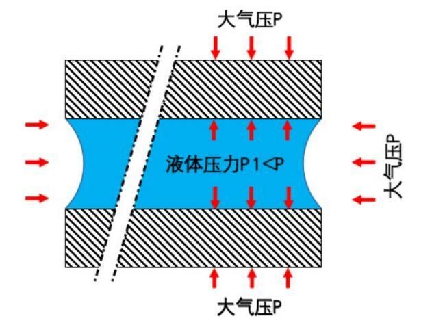 简言之,上面的图稍微有点错误:水和大气的界面不是平的,而应该是一个凹液面。而恰恰是这个凹液面,导致了完全不同的结果。具体讲,就是使得液体内部的压力低于外部的大气压力。