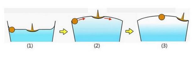 若两个小固体漂浮在液面上。当两固体均被液体浸润或当它们均不被浸润时,表面张力的作用使相邻两固体相互接近;当一个是被浸润而另一个不被浸润时,表面张力使它们使他们远离。怎样从张力角度来解释?