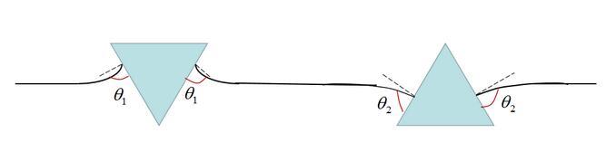 因为表达式中其他参数都为正数,那么我们只需关注的正负,此时你们应该理解了为什么称为毛细电荷,这其实是在做静电学的类比。再看毛细电荷的表达式,其实只需要判断的正负,就能知道横向毛细力是吸引力还是排斥力了。表示接触线处液面切线的倾斜角,定义其往下为正。至此,我们就可以总结一些结论了。