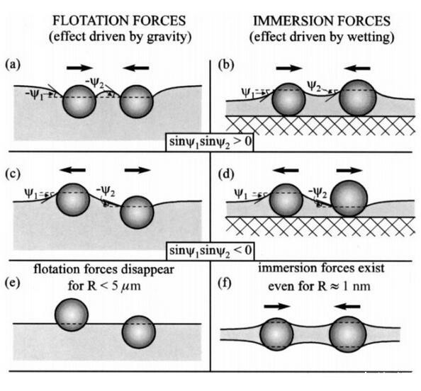 这里写的也比较清楚,漂浮颗粒之间的毛细作用由重力引起,其他的情况则是由颗粒的浸润性导致。如果有人还有疑问的话,欢迎留言讨论。