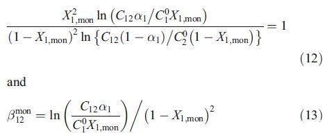 混合胶束规则溶液理论可以推广到混合单层。为了评估混合单分子层中的相互作用参数bmon 12,可以在恒定γ值下推导出混合胶束的类似方程,如下[24,25]: