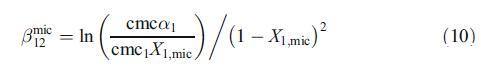 这些结果可以通过使用规则溶液理论(RST)得到证实,该理论不仅表征了混合胶束中的相互作用参数bmic 12,还解释了偏离理想状态的原因[20]。根据RST,混合胶束中的活性系数表示如下: