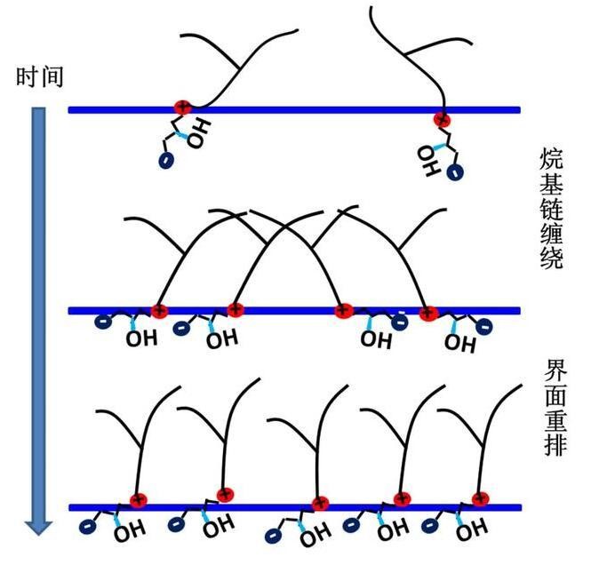 黑色曲线代表烷基链;灰色曲线代表EO基团