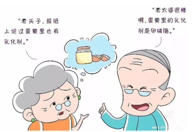 沙拉酱:其中最主要的成分就是植物油和水,所以为了呈现出相互混合不分层的姿态,沙拉酱的配料中往往都会加入鸡蛋,而鸡蛋黄中含有的卵磷脂就是一种天然乳化剂。