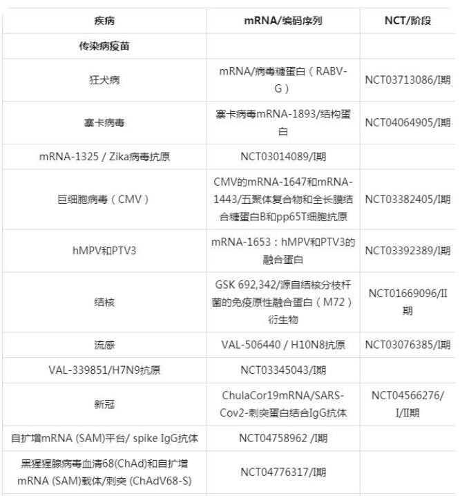 (3)临床试验中基于LNP的mRNA疫苗和治疗