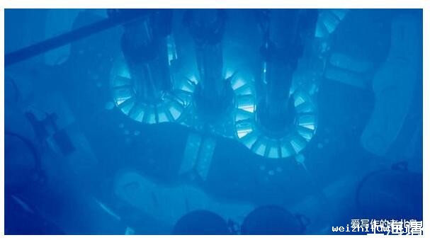 中微子虽然几乎不跟任何物质产生作用,但也不是绝对,中微子跟原子核对撞时会产生其他粒子,这些粒子会产生切伦科夫辐射,而切伦科夫辐射的表现特点就是“蓝光”。