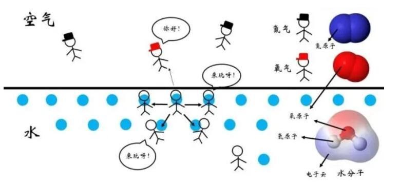 然而,这种关系的稳定程度是与双方分子的种类有关的。如图4所示,对于水-空气的界面而言,处于表面的水分子周围的分子种类较为丰富,除了其他水分子,还有空气中的氧气、氮气等分子。