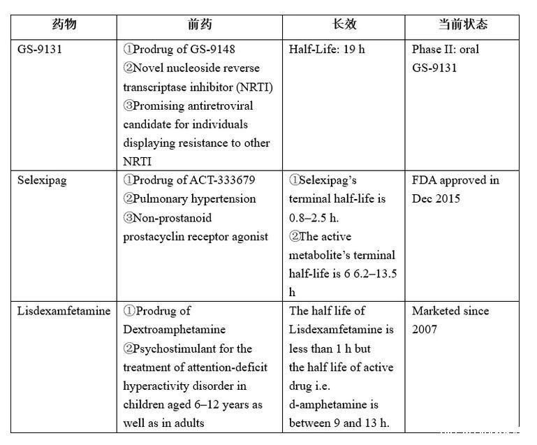 前体药物是活性药物分子的无活性或活性较低的生物可逆转衍生物,在产生药理作用之前,需要经过酶或生物转化。前药策略提高了许多分子的性能,它有助于增强口服给药后的药物吸收以及稳定性。前药在市场中一直占据着一席之地,而且发展迅速,以下为FDA批准的一些长效前药: