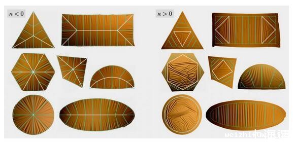 在这项研究中,团队把重点放在具有正曲率和负曲率的弯曲外壳,重点分析材料的物理形状和曲率对褶皱的模式可能产生多大的影响。