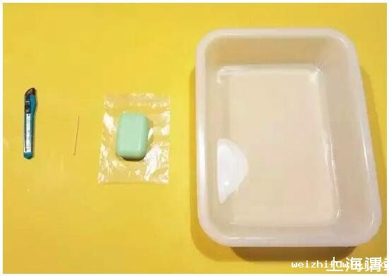 实验材料:小刀、一头劈开的牙签、肥皂、水盆