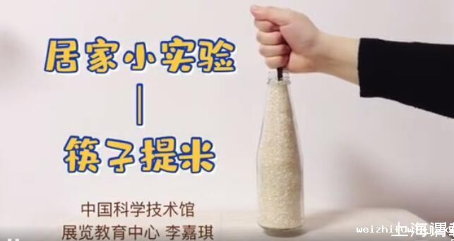 将筷子插入一个装满大米的瓶子中,发现一根筷子就能提起整瓶大米,这是由于筷子与米之间以及米与米之间的摩擦力很大造成的。