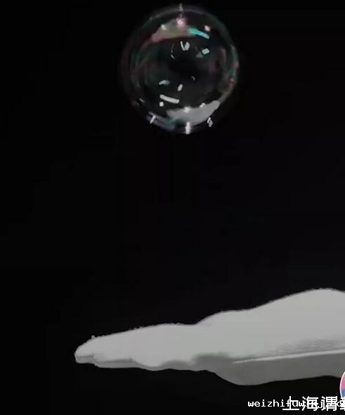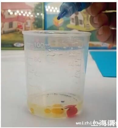解密时刻:步骤1中的泡泡因水分蒸发,易爆,加入胶水后会变得很黏,水分就不容易蒸发,泡泡膜的强度增加,于是就能在我们的手背上蹦跳了。