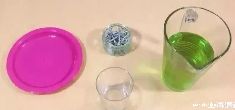 铁钉,水杯,水(有颜色的话效果更明显),塑料小盘子