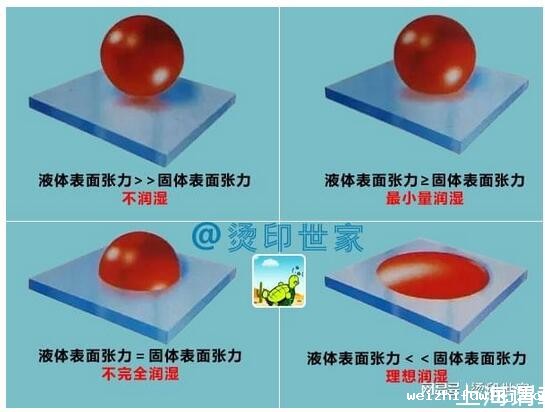如果压力足够了,温度也足够了,但还是烫不上,可能问题出在胶粘层与承印物之间的配合上,也就是电化铝的胶粘层与承印物表面的亲和力出了问题。从本质上说,电化铝转移到承印物上的过程是一个粘接的过程,当然这是一个需要加热粘接的过程,所以我们跳出烫金小圈子,先来看看胶水粘接的机理。
