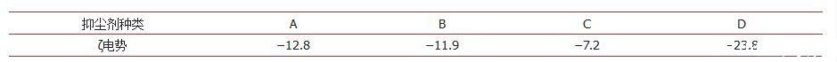 表2.四种抑尘剂的ζ电势