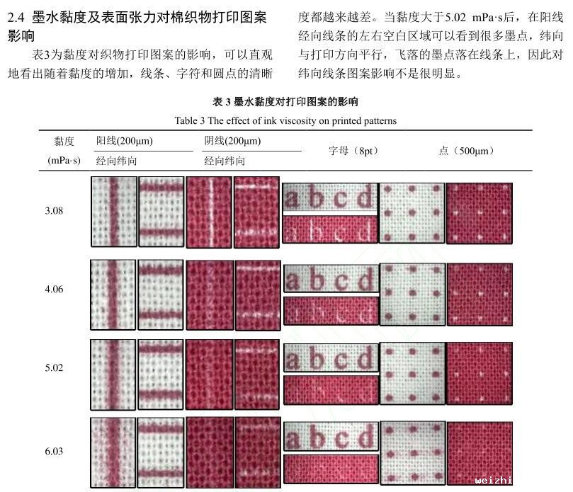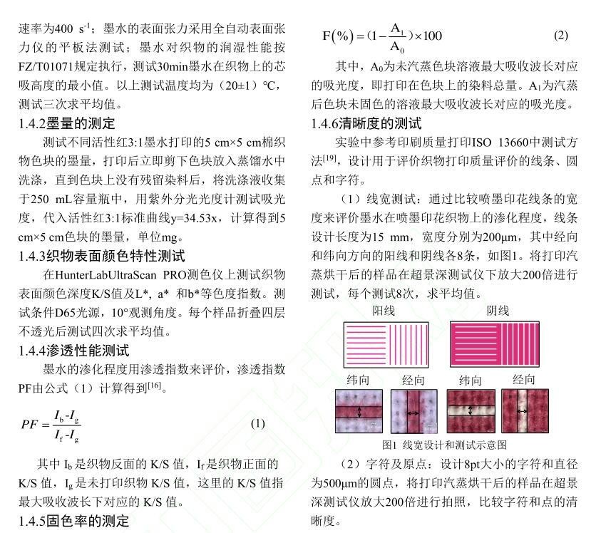 活性染料墨水黏度及表面张力对棉织物印花性能的影响