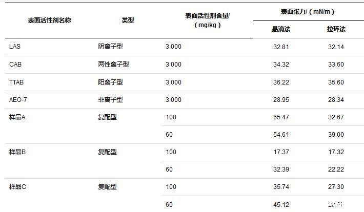 表2表面活性剂复配溶液不同方法间静态表面张力测定结果对比(25℃)