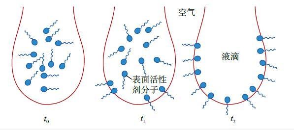 图4表面活性剂分子在液滴上的迁移排布示意图