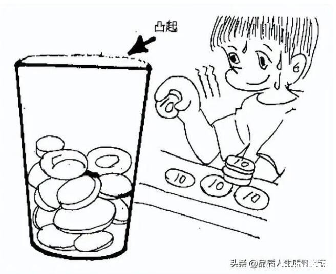表面张力的实验:这个实验,也可以说是一个关于表面张力的小游戏。先找一个朋友和你一起来进行这个游戏,然后准备一杯水(把水加到杯子的边缘处,目视水至杯口齐平处),16枚1元的硬币(也可以更多)。然后是这个游戏的规则,和朋友每人一次向杯子里轮流投放硬币,每次投放硬币数没有限制,可以一次放进1枚,可以2或3枚,或者更多,直到谁先把水溢出杯子为止。投放硬币的时候用拇指和食指捏住硬币轻轻的放进盛满水的杯子。本人最多一次投放了16枚1元硬币。呵呵,好的大家去试试吧。