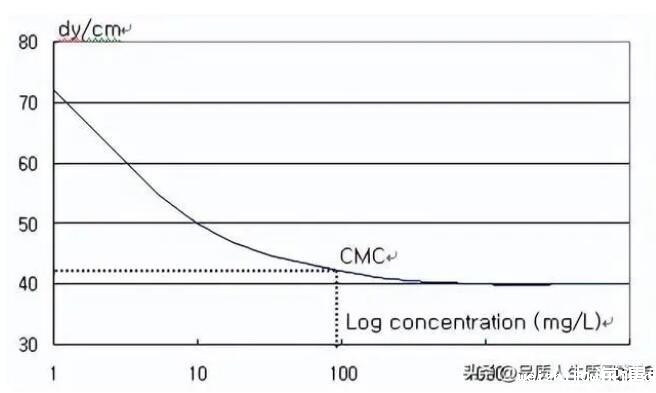 而電鍍液的潤濕性是可由液體的表面張力來做控制及分析,由表面張力的理論得知,若電鍍液的表面張力愈小,表示電鍍液的內聚力愈小、愈容易滲入細小的縫隙裡面、也愈容易於被鍍物表面潤濕讓金屬離子鍍上去。因此為了使電鍍液的表面張力降低或是增加電鍍後的品質,通常於電鍍液中會加入有機添加劑(光澤劑,結構改良劑,潤濕劑..等),其中潤濕劑即是在使鍍液表面張力降低的作用。然而當這類界面活性劑添加超過CMC點後,表面張力即不再改變(如下圖)。此時過量的添加不但沒達到效果反而增加了生產成本。因此CMC點便可作為電鍍液的監控標準值,來決定何時添加及添加的量。