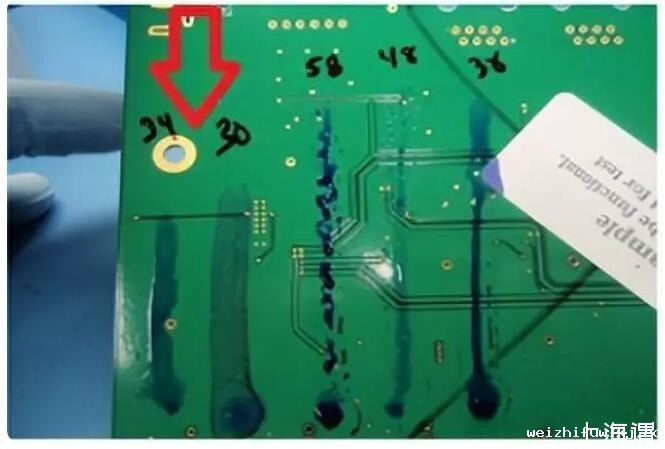 PCB表面张力影响防潮剂的涂覆,出现的失效现象主要是气泡或者喷涂不均匀等问题。表面张力太小会导致防潮剂涂覆不均匀,还会出现气泡问题等问题。同时也不能过高,过高也会导致涂覆不均匀等,一般设定在36~40之间,与之相关的还有PCB涂覆的绿油,以及表面附着的有机物的多少,也影响最终PCB表面的张力。在PCB的制程控制中都要注意,以免对后续工序造成不必要的影响。