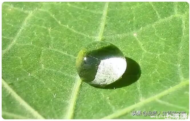 由于接触角的不同和浸润与非浸润的情况就可以解释题主所说的完全不同的水滴效果