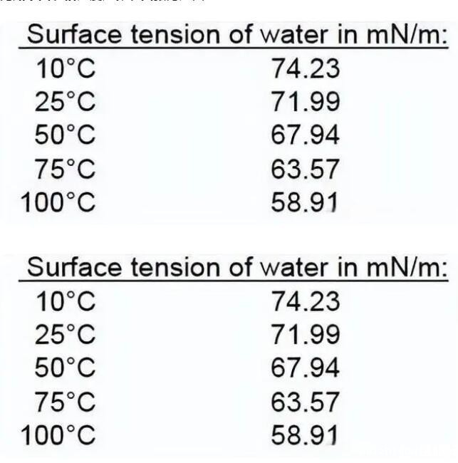 比如下面表格温度越低表面张力越大