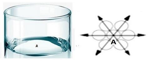 图1水平面A点示意图 图2 A点表面张力方向
