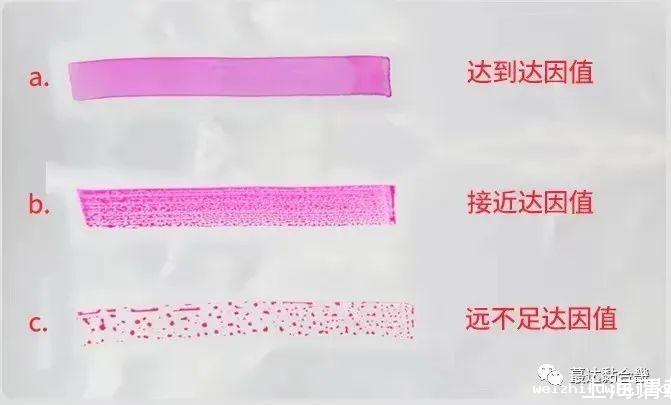 通常情况下达因值的简易测试方法可以通过达因笔和达因墨水来测试,一般用达因笔测试更为便捷一些,常规的达因笔有如下分类:32、34、36、38、40、42、44等规格,它们所代表数字就是相对应的表面张力值大小(举例说明:我们常说的40达因值以上,就是说明这个材料需要达到的印刷表面张力系数是40以上才能满足重涂)。