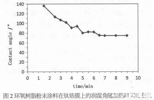 这说明环氧树脂粉末涂料对钛锆膜的润湿性良好,能够自发地在涂层表面进行铺展,且涂层具有良好的附着力。