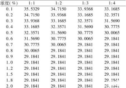 表1不同温度下不同浓度的黄花败酱皂甙水溶液的表面张力σ×10-3(N·m-1)