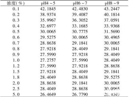 表2不同pH值下不同浓度的黄花败酱皂甙水溶液的表面张力σ×10-3(N·m-1)