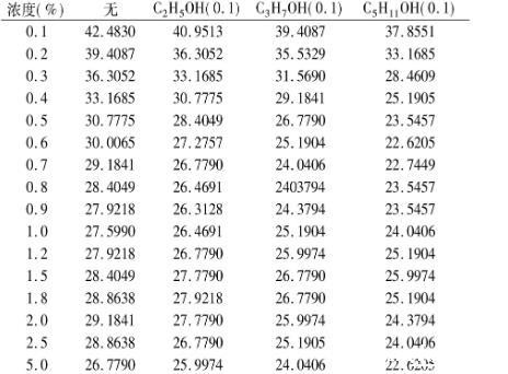 表5不同醇对黄花败酱皂甙水溶液的表面张力的影响σ×10-3(N·m-1)