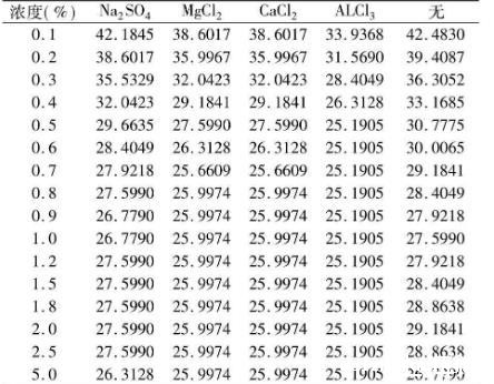 表4不同价态离子添加剂对黄花败酱皂甙水溶液的表面张力的影响σ×10-3(N·m-1)