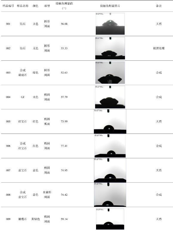 本次实验选用运用此原理的美国FTA仪器,是基于被测样品的特点,宝玉石本身体积小,对测试液滴的尺寸要求较小,且宝玉石表面经过抛光后较为光滑,可能造成的误差较小。