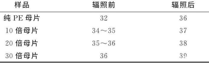 表1不同发泡倍率母片辐照处理前后的表面张力