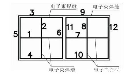 图1后舱管理装置下组件结构及电子束焊缝位置示意图