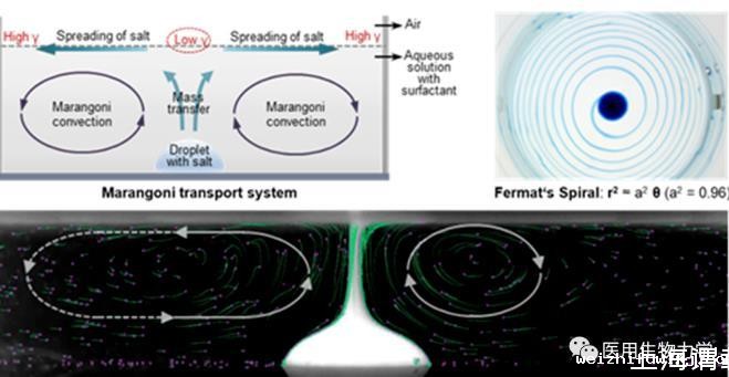 (5)马兰戈尼效应驱动液体铺展及其生成图案,以及液面下方溶液中的马兰戈尼对流